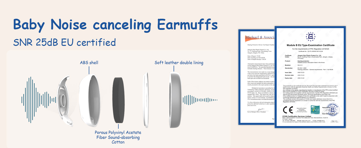 [Baby Hearing Protection]: Specially designed for babies and toddlers of age 3 months to 36 months; 25dB Noise could be blocked ( SNR 25dB EU certified) in average. Infant eardrums are more fragile, every year there will be babies who are not protected their ears and caused hearing loss. It’s important for parents to get suitable ear muffs to protect your loved babies’ hearing from our noisy environment.