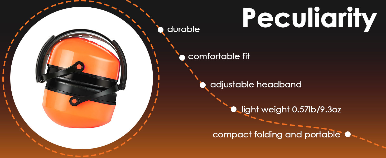 [Compact Folding & Light Weight]: The earmuffs can be folded when the headband is in its smallest position. The earmuffs are lightweight at 0.57lb, which makes them easy to carry and not a burden when going out.
