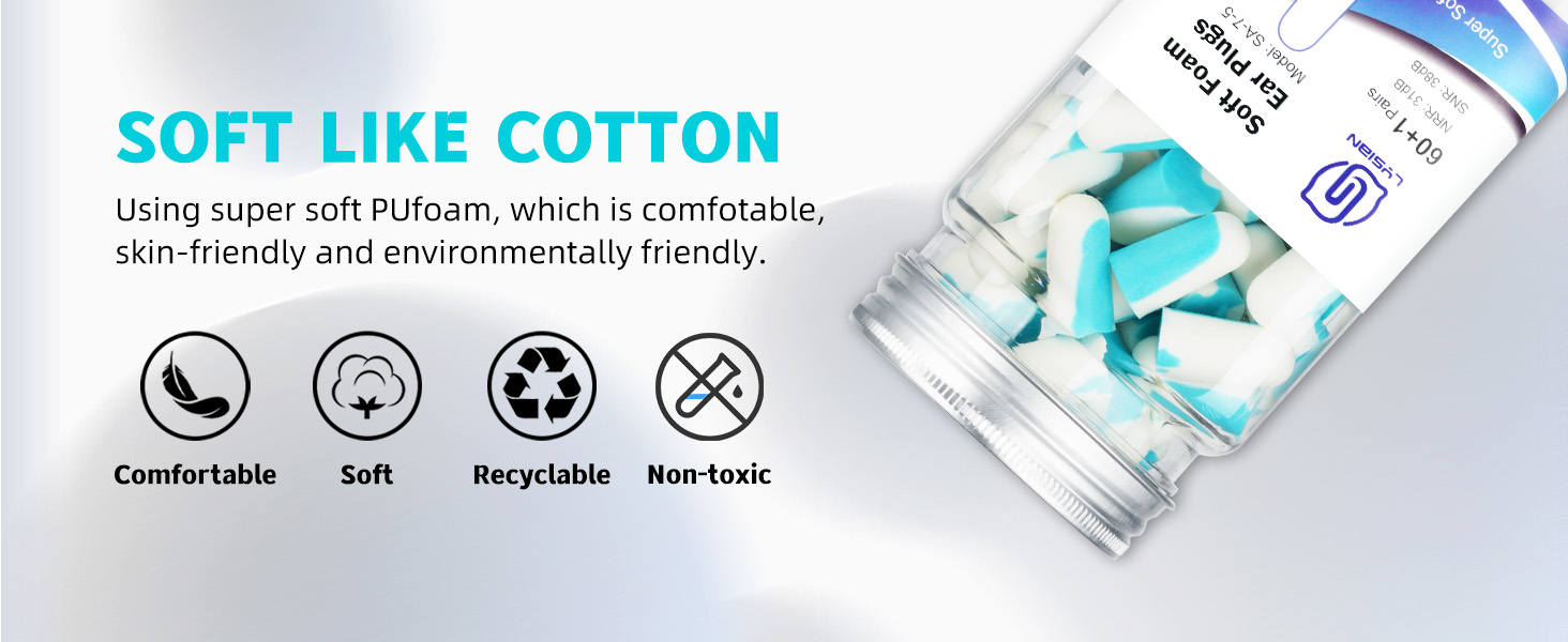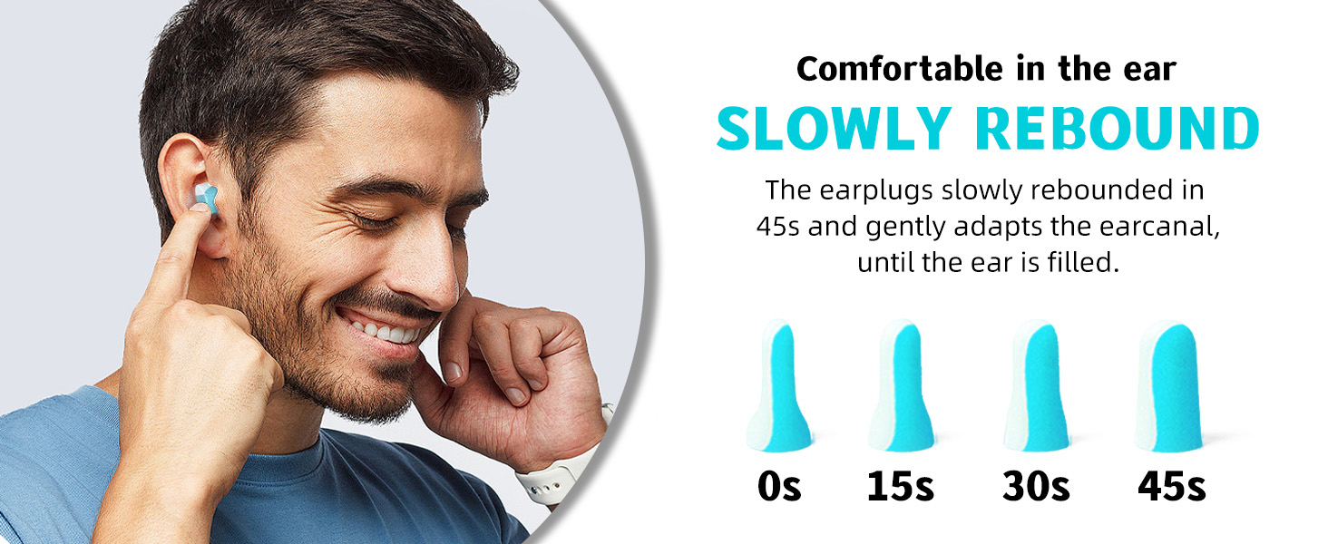 [Non-toxic & Slow Rebound Material]: Made of Super Soft and Non-toxic PU Foam (Latex free and PVC free); Slow rebound foam material fits different ear canal structures and have no pressure on ear