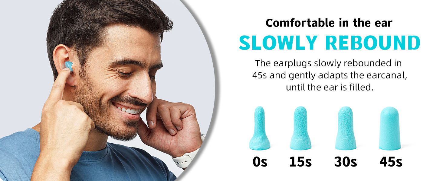 [Non-toxic & Slow Rebound Material]: Made of Super Soft and Non-toxic PU Foam (Latex free and PVC free); Slow rebound foam material fits different ear canal structures and have no pressure on ear